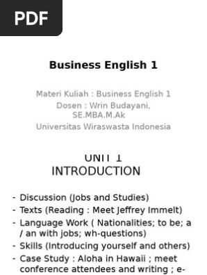 Business English 1 Unit 1 Introduction Pdf Question English Language